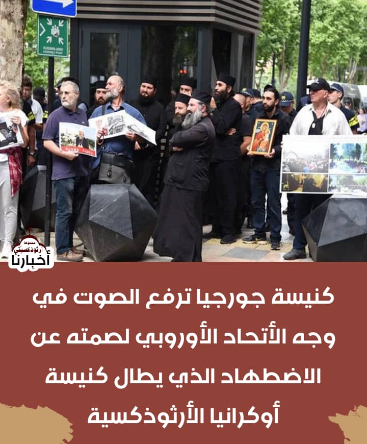 في 27 حزيران 2024، احتشد الأكليريكيين الأرثوذكس الجورجيون والمؤمنون خارج سفارة الاتحاد الأوروبي في تبليسي، جورجيا . للاحتجاج على صمت الاتحاد الأوروبي في مواجهة الاضطهاد المفتوح للكنيسة الأرثوذكسية الأوكرانية.