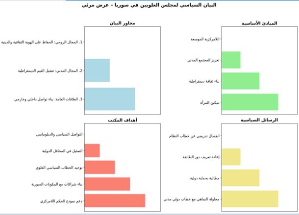 ومن خلال التركيز على المبادئ الأربعة (اللامركزية، المجتمع المدني، الثقافة الديمقراطية، وتمكين المرأة)، فإن القائمين على المشروع يحاولون رسم ملامح خطاب تقدمي، يتقاطع مع أجندات المجتمع الدولي، من دون الارتباط بأطر المعارضة التقليدية التي فقدت الكثير من مصداقيتها في نظر شرائح كبيرة من السوريين.