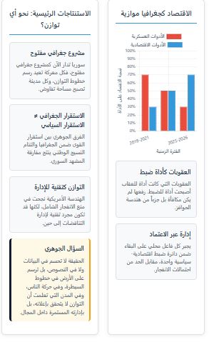فالعقوبات التي كانت أداة للعقاب أصبحت أداة للضبط، ورفعها عن سوريا في كانون الأول الماضي لم يكن مكافأة سياسية، بل جزءا من هندسة الحوافز، فمن يلتزم بخريطة التوازن ينال حوافز اقتصادية، ومن يخرقها يتعرض للحرمان المالي والدبلوماسي.
