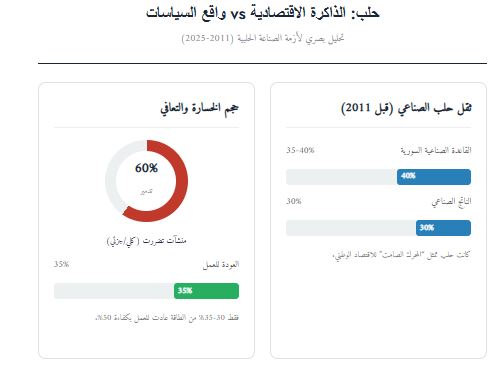 أزمة صناعة حلب ليست فقط أزمة موارد، بل حوكمة، فحينيشير الصناعيون إلى غياب الردود الحكومية، أو إلى التعامل مع مصانع تشغّل مئات العمال كما لو كانت ورشاً صغيرة، فنحن أمام خلل في الفلسفة الاقتصادية ذاتها.
