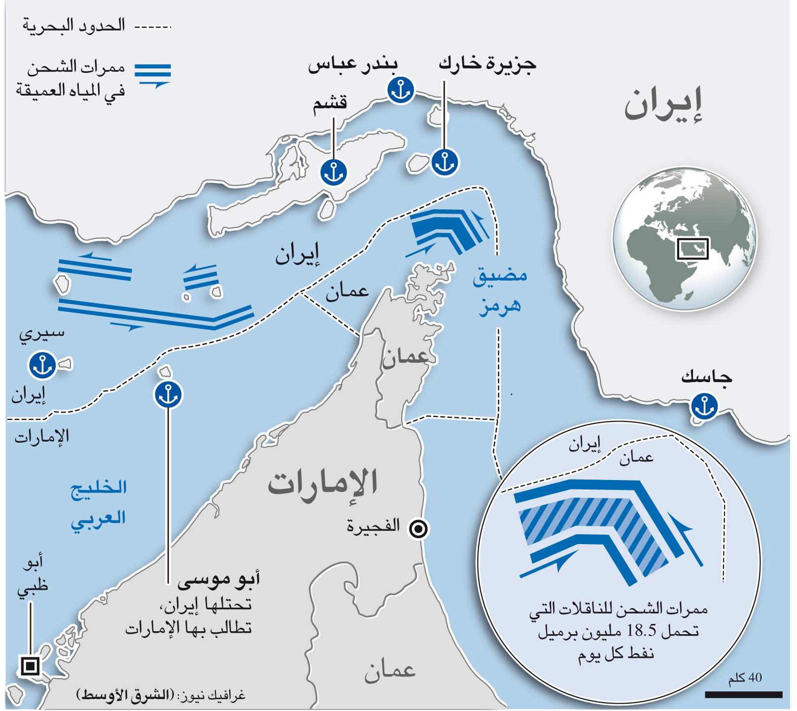 يمر عبر المضيق نحو 40% من النفط المنقول بحرًا عالميًا. أي اضطراب فيه يؤثر مباشرة على أسعار الطاقة والتجارة الدولية.